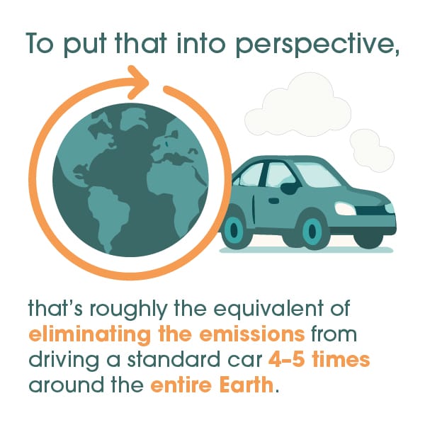 That’s the equivalent of eliminating the emissions of a standard car driving 4-5 times around the entire world, and that’s all been achieved in as little as 2 months!
